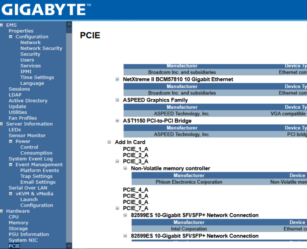 We check the KVMs PCIe Setting to find my ASUS PCIe NVME Adapter: